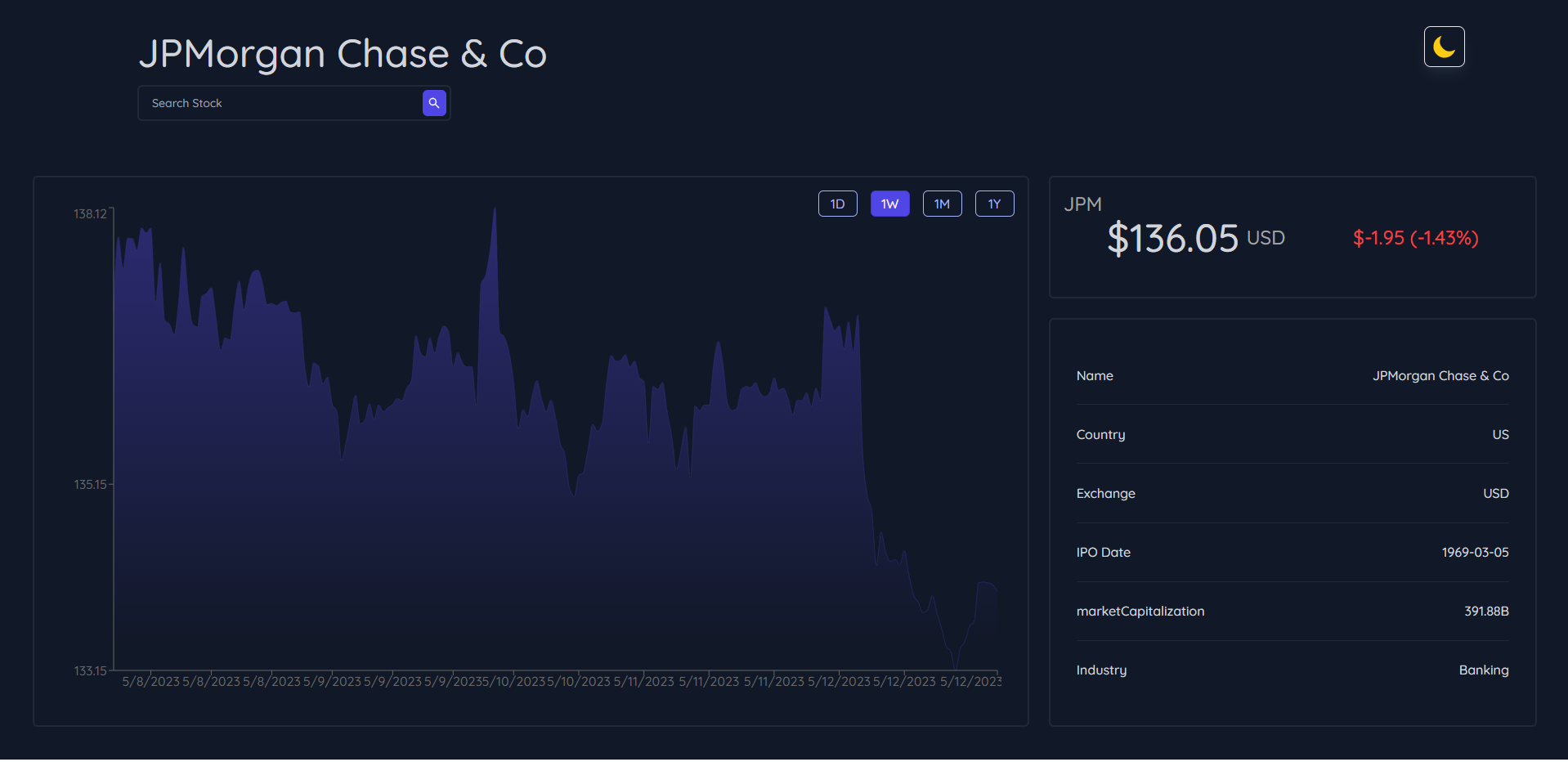 A sleek and intuitive web app leveraging React.js, TypeScript, and Tailwind CSS to display real-time stock prices and visually track their performance through interactive charts, using data fetched from APIs.